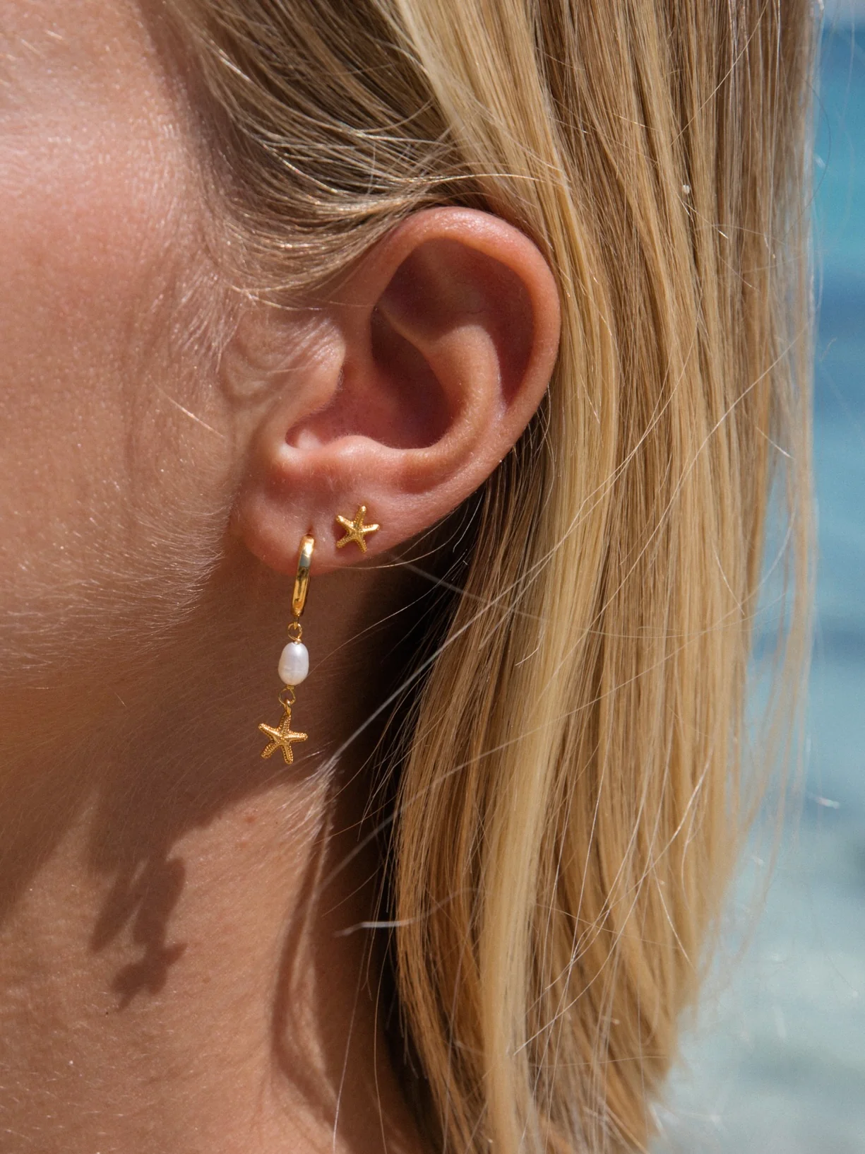Our Luana hoops are perfect for everyday elegance while encapsulating a coastal essence. A lustrous freshwater pearl hanging above a hand drawn starfish charm, this earring will become a new favourite in your collection.
