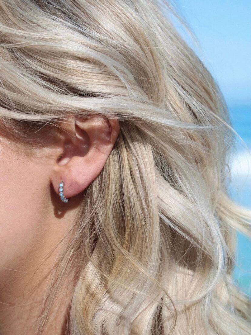 Crafted from ocean-inspired, water resistant materials, Our Waikiki hoops are your new summer essential. They're versatile to be worn alone or stacked with other earrings, the blue stones bringing a essence of colour.